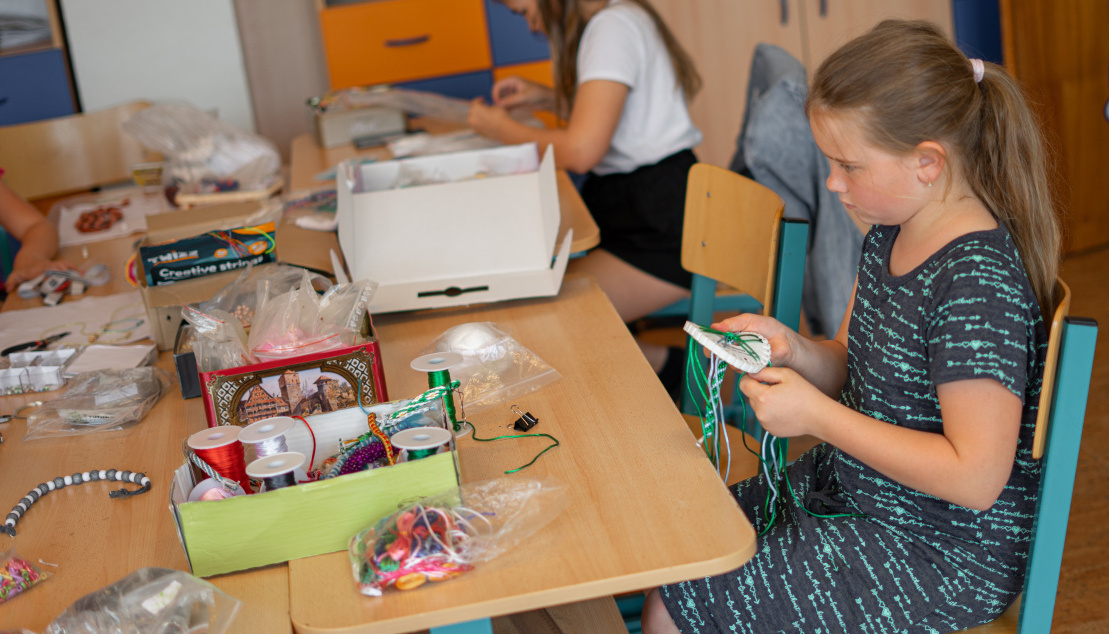 U nás si děti vyzkouší tvorbu s nejrůznějšími materiály-papírem, textiliemi, korálky, drátky a dokonce i s přírodními poklady a druhotnými materiály! Každá lekce je plná nápadů pro tvorbu 3D výrobků, které si děti odnesou domů. Necháváme se inspirovat okolním světem – čtyři roční období, barvitá lidová tradice, oblíbené příběhy a aktuální události.