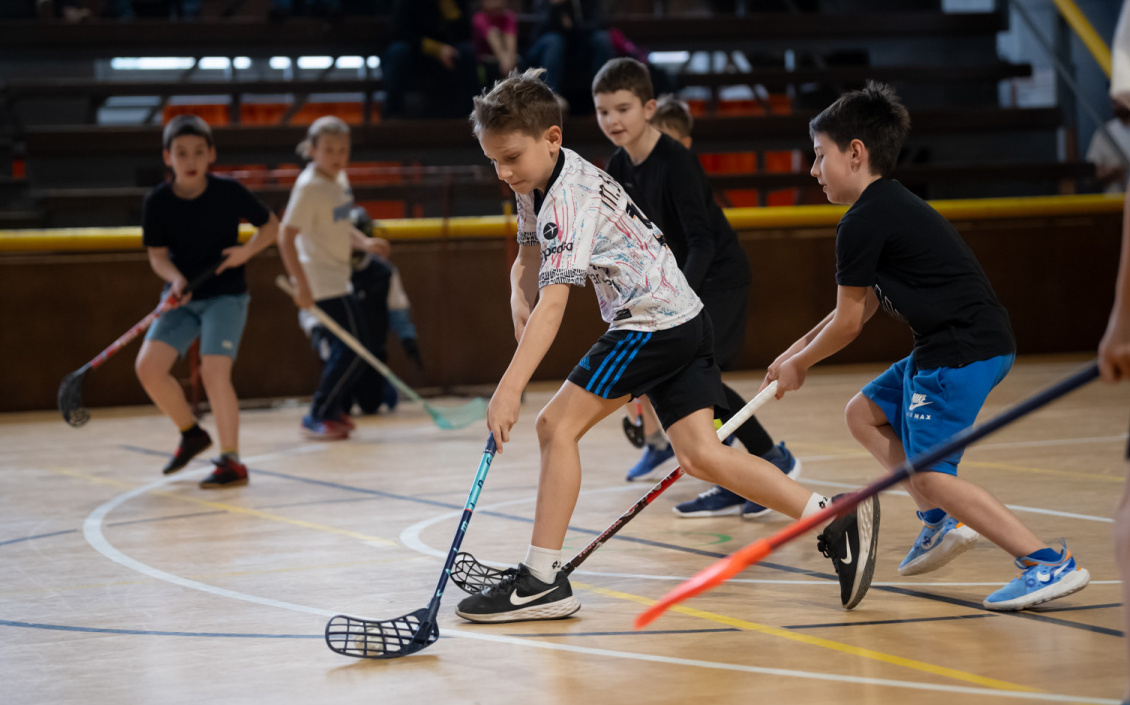 Na kroužku florbalu se děti naučí základní pravidla a jednoduché techniky práce s florbalovou holí a míčkem.