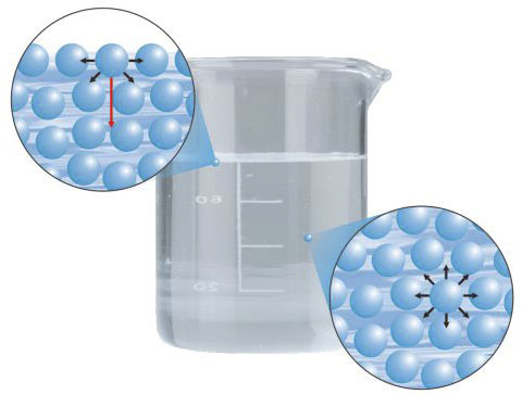 Obrázek Okruženje molekula vode na površini i u unutrašnjosti od User (unknow) [Public domain], via kemija-2