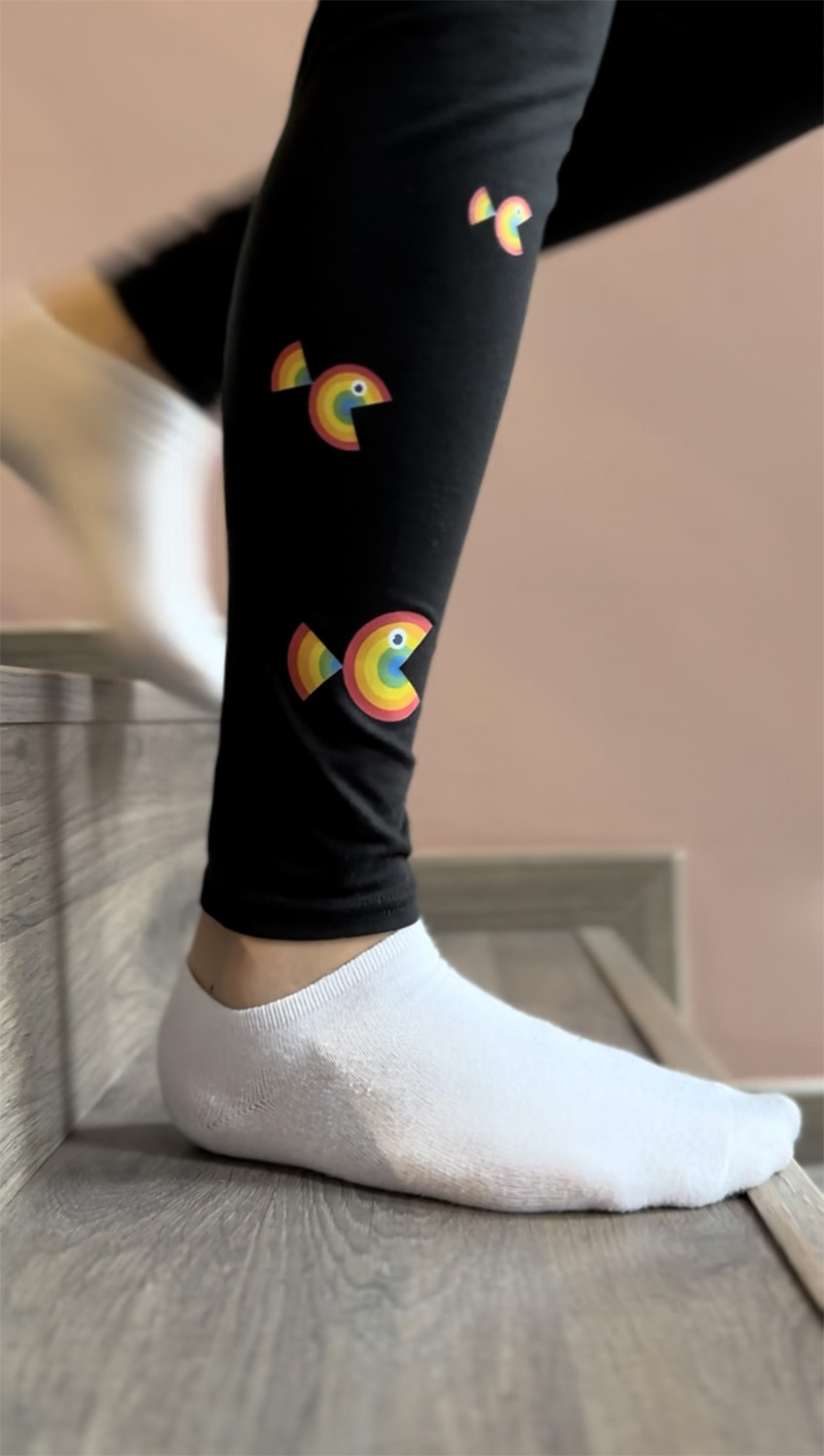 Černé legíny s veselými rybími motivy a decentním logem. Elastický střih umožňuje dětem volně skákat, běhat nebo tančit během kroužků i her na hřišti. Veselý vzor přitáhne pozornost, zatímco tmavá barva skvěle skryje každou drobnou šmouhu. Pohodlný a roztomilý společník pro každé dětské dobrodružství.