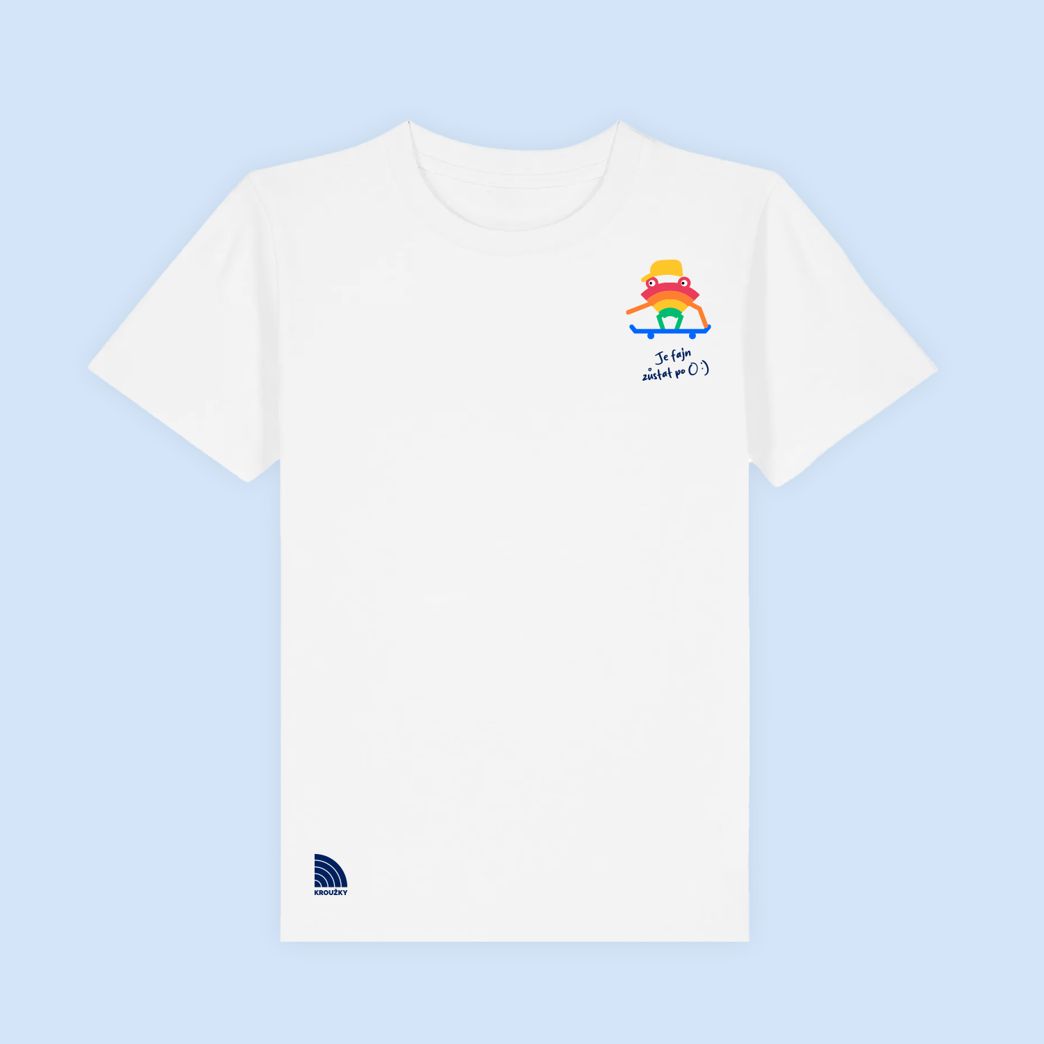 Naše Kroužkové tričko v několika barvách je stylový kousek, který si děti zamilují. Výrazný potisk s naším sloganem a známou kroužkovou žábou z něj dělá parťáka na kroužek, tělocvik i výlet. Díky příjemnému materiálu a pohodlnému střihu se skvěle nosí každý den – do školy, ven i jen tak doma.