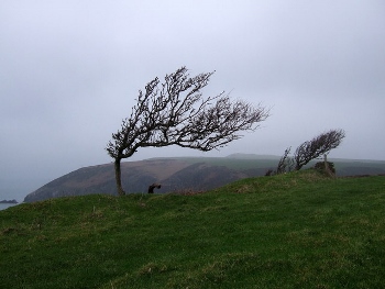 Obrázek Wind-sculpted trees on the Pembrokeshire coast - geograph.org.uk – 298264 od ceridwen [CC-BY-SA-2.0], via Wikimedia Commons
